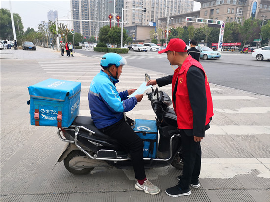 每天早晚市民、學(xué)生出行的兩個(gè)交通高峰時(shí)段,在沈丘縣兆豐大道與陽(yáng)光路交叉口,沈丘縣自然資源局志愿者身著紅馬甲,佩戴“文明勸導(dǎo)”袖章,舉指揮旗,掛口哨,在交通路口認(rèn)真履行“文明交通勸導(dǎo)”志愿者職責(zé),發(fā)放倡議書,耐心引導(dǎo)機(jī)動(dòng)車、非機(jī)動(dòng)車及行人遵守交通規(guī)則,遇到老人、小孩過(guò)斑馬線時(shí),志愿者們立即上前幫扶;面對(duì)交通違規(guī)行為,志愿者們耐心上前勸說(shuō)。志愿者們以高度的社會(huì)責(zé)任感、昂揚(yáng)的精神面貌展現(xiàn)了他們的良好形象,為廣大市民營(yíng)造一個(gè)平安的出行環(huán)境,贏得了市民的大力稱贊。