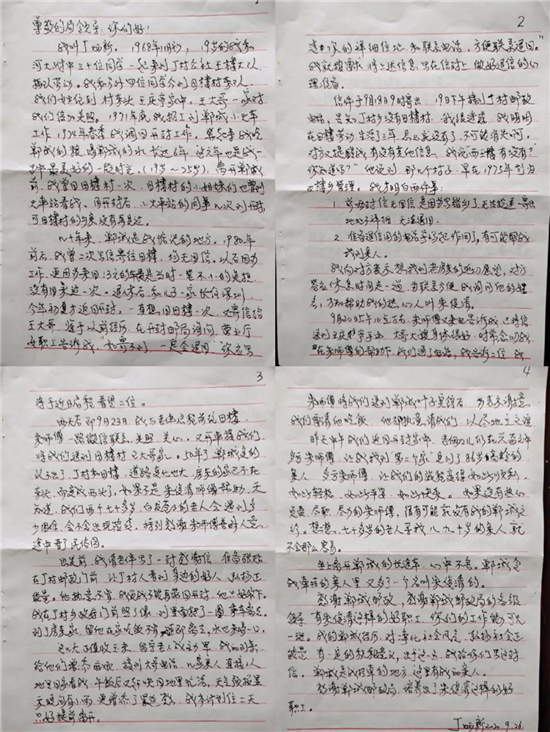 交談中,朱俊清得知寄信人丁阿姨是一名下鄉(xiāng)知青,收件人王先生是她插隊時的房東。從1968年至1971年底插隊時,丁阿姨與河南大學附屬中學的4位同學曾居住在王先生家,一住就是三年。三年間,王先生一家視她們如親人,在生活上為她們提供了很多力所能及的幫助。1971年,她調至鄲城縣小火車站工作;因工作需要,1974年她又調回老家開封。沒想到,這一別就是46年。