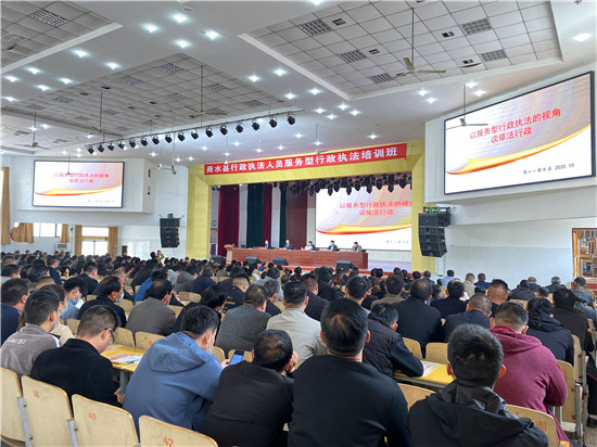 10月19日,商水縣召開(kāi)行政執(zhí)法人員服務(wù)型執(zhí)法培訓(xùn)會(huì)。縣委常委、政法委書記、縣政府黨組成員王勇,市司法局黨組成員、副局長(zhǎng)鄭啟新,市司法局依法行政指導(dǎo)科科長(zhǎng)楊玉芹出席培訓(xùn)會(huì)??h司法局黨組書記、局長(zhǎng)王洪輝主持會(huì)議。