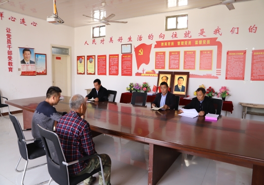 (接到鄭德民躺在病床上布置工作的電話,縣自然資源局駐土趙行政村第一書(shū)記王玉杰、土趙行政村主任邱成明心懷悲痛立即召開(kāi)村干部會(huì)議落實(shí)。鄭德民的位置是空的。)