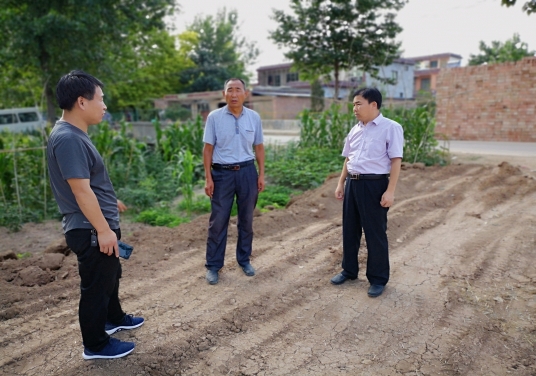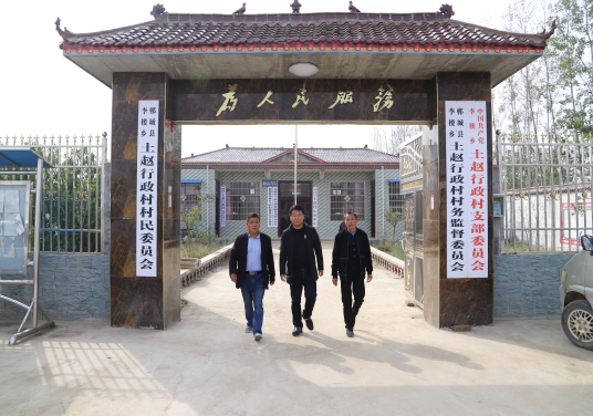 (圖為李樓鄉(xiāng)黨委副書(shū)記李文明和駐村第一書(shū)記、土趙村干部在村室調(diào)研)