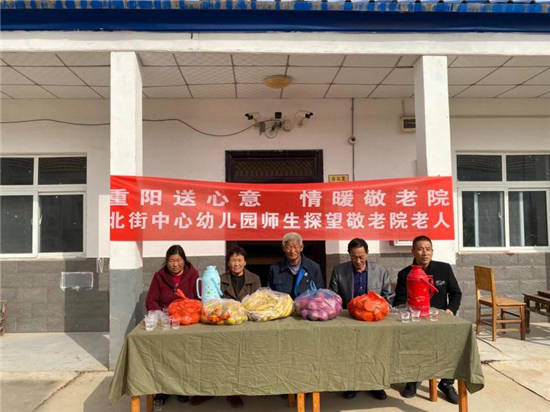 在九九重陽節(jié)來臨之際,東夏亭鎮(zhèn)北街中心幼兒園師生到鎮(zhèn)敬老院看望慰問老人。為敬老院的老人們帶來水果、餅干等慰問品,也給老人們帶來了心靈上的慰藉。