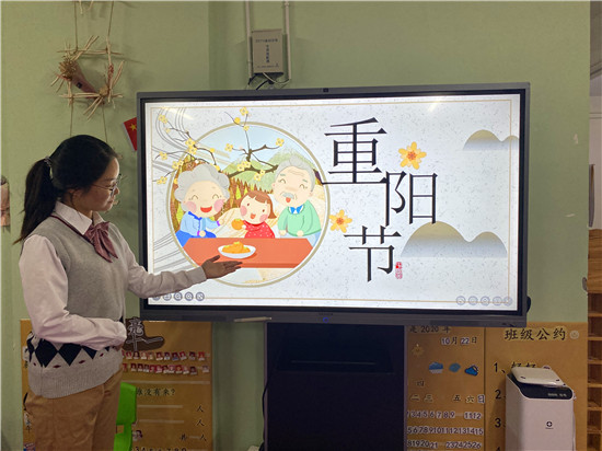 在幼兒園班級活動中,教師通過圖片和視頻等幼兒喜聞樂見的形式,讓幼兒了解重陽節(jié)的習(xí)俗,明白了重陽節(jié)的意義。孩子們還用彩紙、水彩等為爺爺奶奶制作了賀卡和禮物,表達(dá)自己對老人的愛。