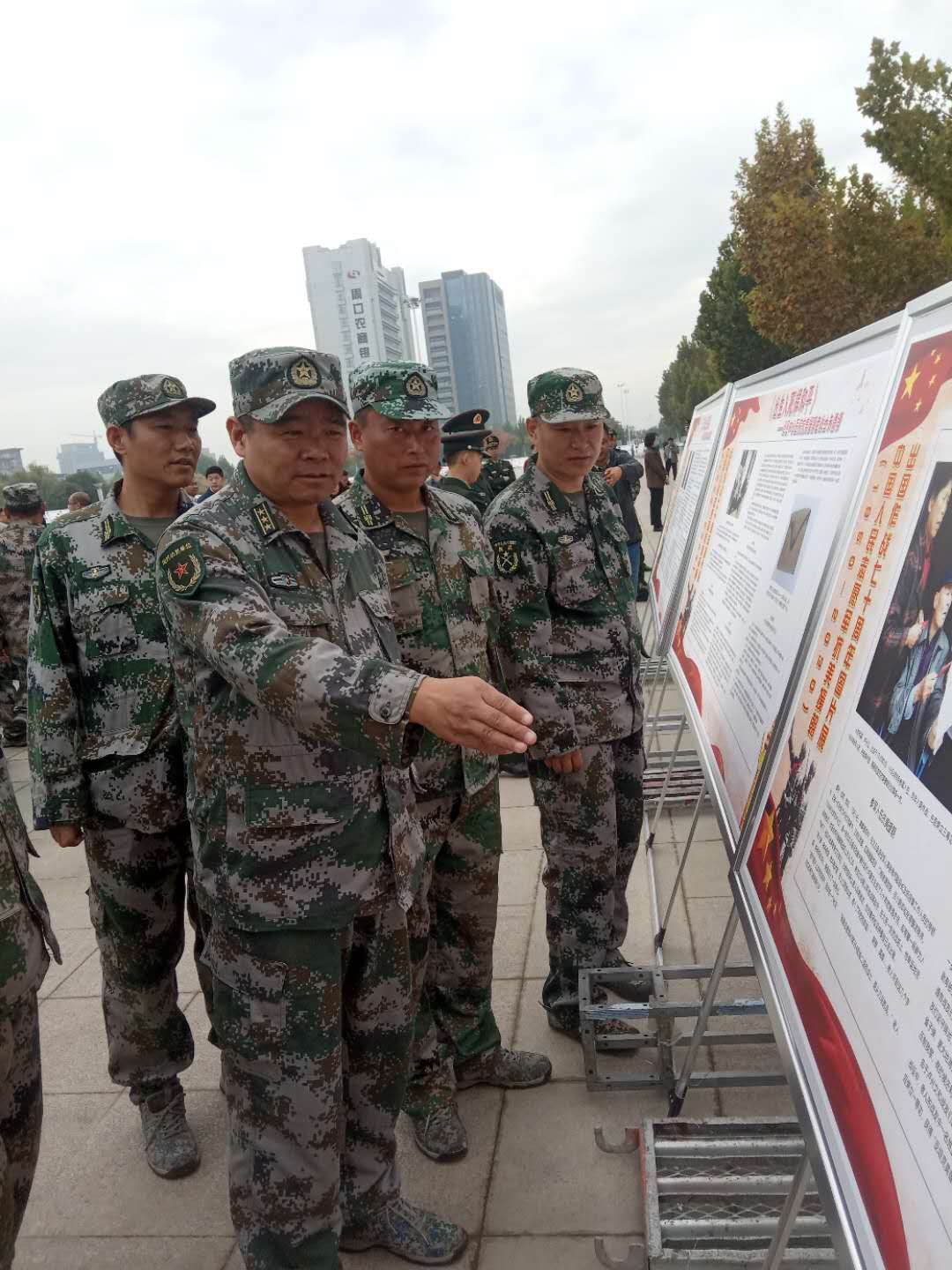 10月26日上午,周口市和諧廣場上口號嘹亮、步伐鏗鏘、隊伍整齊,正在周口市民兵訓練基地參加輪訓備勤任務的西華縣近200名基干民兵,整齊列隊,集體參觀由市委、市政府、市軍分區(qū)聯(lián)合舉辦的“銘記偉大勝利 捍衛(wèi)和平正義——紀念中國人民志愿軍抗美援朝出國作戰(zhàn)70周年主題展覽”。