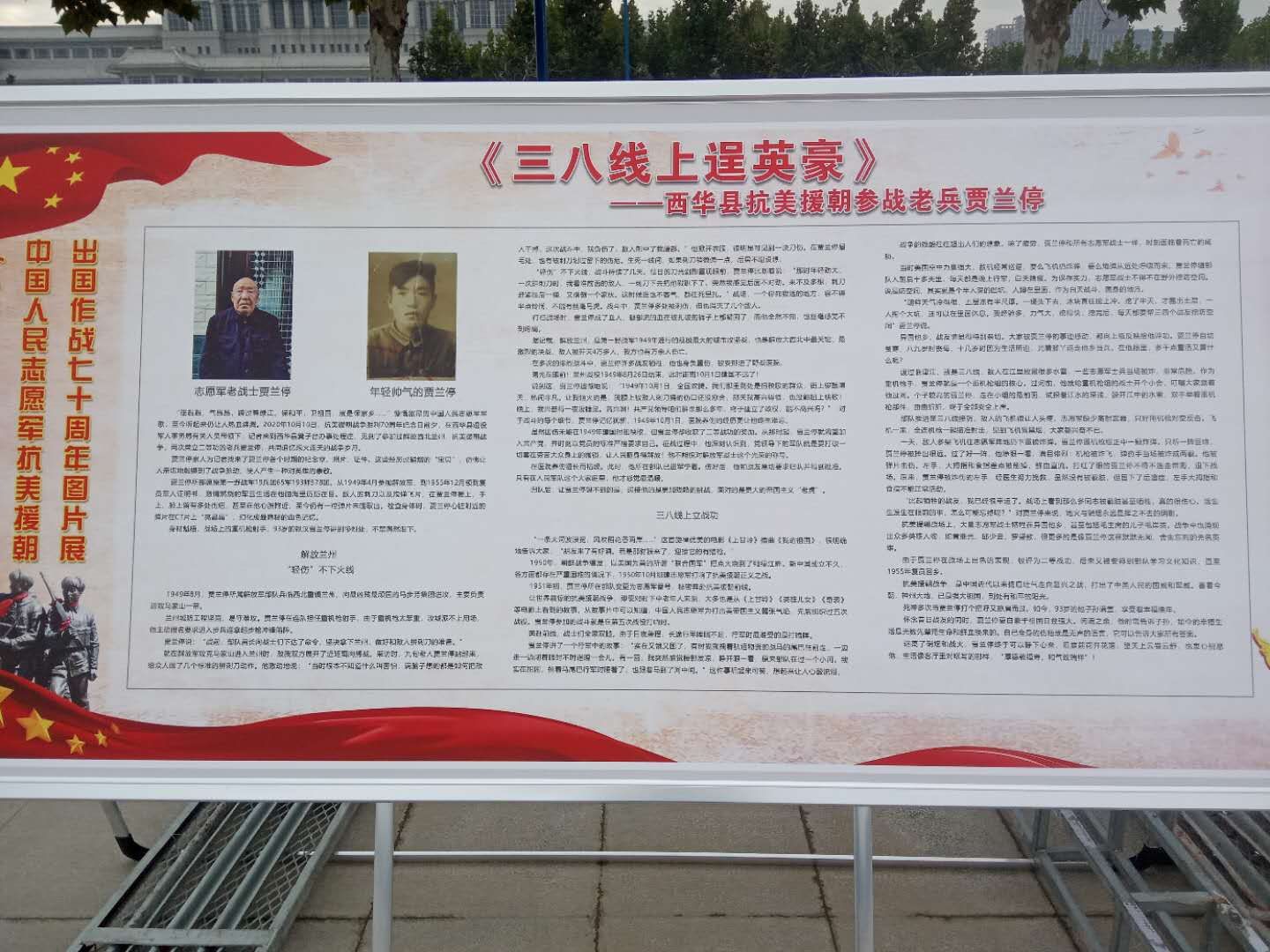 在《三八線上逞英豪,西華縣抗美援朝參戰(zhàn)老兵賈蘭停》英雄事跡展板前,民兵們仔細地看了一遍又一遍,深受感動。“為了國家和民族,為了和平與正義,這位西華老戰(zhàn)士奔赴異域疆場,與強敵殊死較量,事跡可歌可泣,感人至深。我們要以這位本縣老鄉(xiāng)為榜樣,守初心、擔使命,繼承和發(fā)揚老一輩的革命精神、光榮傳統(tǒng)和優(yōu)良作風,進一步弘揚偉大的愛國主義精神,讓紅色基因代代相傳。”來自縣公路局的基干民兵樊麗動情地說。