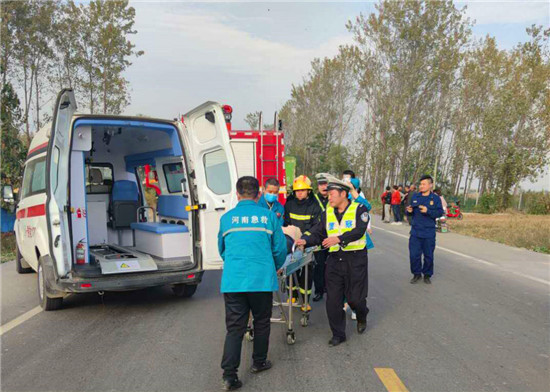 周口市商水縣公安局交警大隊為提高民警處置國、省道市縣結(jié)合部路段道路交通事故應(yīng)急救援能力,第一時間救助受傷人員,最大限度將交通事故造成的人員傷亡、財產(chǎn)損失、環(huán)境污染等危害后果降低到最小限度。10月26日下午3時,在周口市交警支隊事故科王領(lǐng)科長的協(xié)調(diào)指揮下,商水縣公安局交警大隊聯(lián)合駐馬店市上蔡縣公安局交警大隊,在223省道(原219省道)商水縣與上蔡縣交界處的上蔡縣華陂鎮(zhèn)賴莊路段,模擬大貨車與微型貨車發(fā)生事故現(xiàn)場,演練省道市際突發(fā)道路交通事故應(yīng)急救援行動。