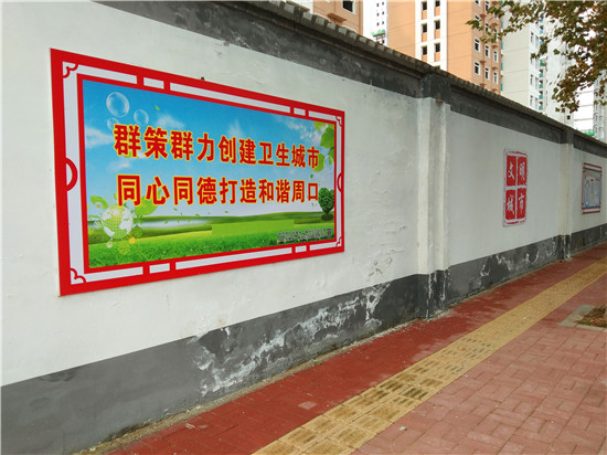 10月28日,記者在周口中心城區(qū)慶豐路邊看到,潔白的外墻上噴涂上了各類公益廣告,倡導(dǎo)市民樹立文明新風(fēng),還扮靚了街道,讓人眼前一亮。①15 周口日報·周道客戶端記者張洪濤 攝