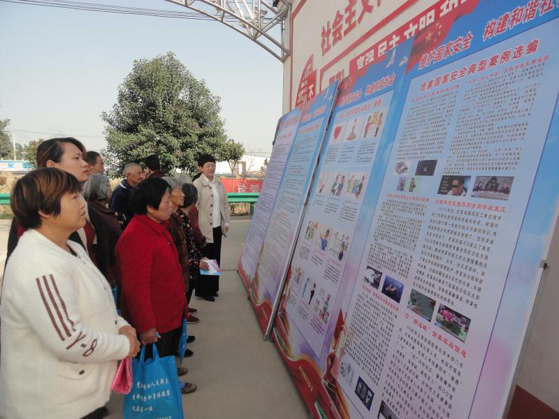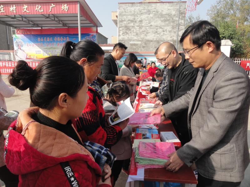 為紀(jì)念《反間諜法》頒布實(shí)施6周年,商水縣委政法委、縣委國安辦等單位聯(lián)合開展普法教育進(jìn)鄉(xiāng)村活動,通過發(fā)放宣傳資料、展示宣傳版面、現(xiàn)場講解等形式對群眾進(jìn)行國安教育和法治教育。圖為11月1日,工作人員在活動現(xiàn)場向村民發(fā)放宣傳資料。