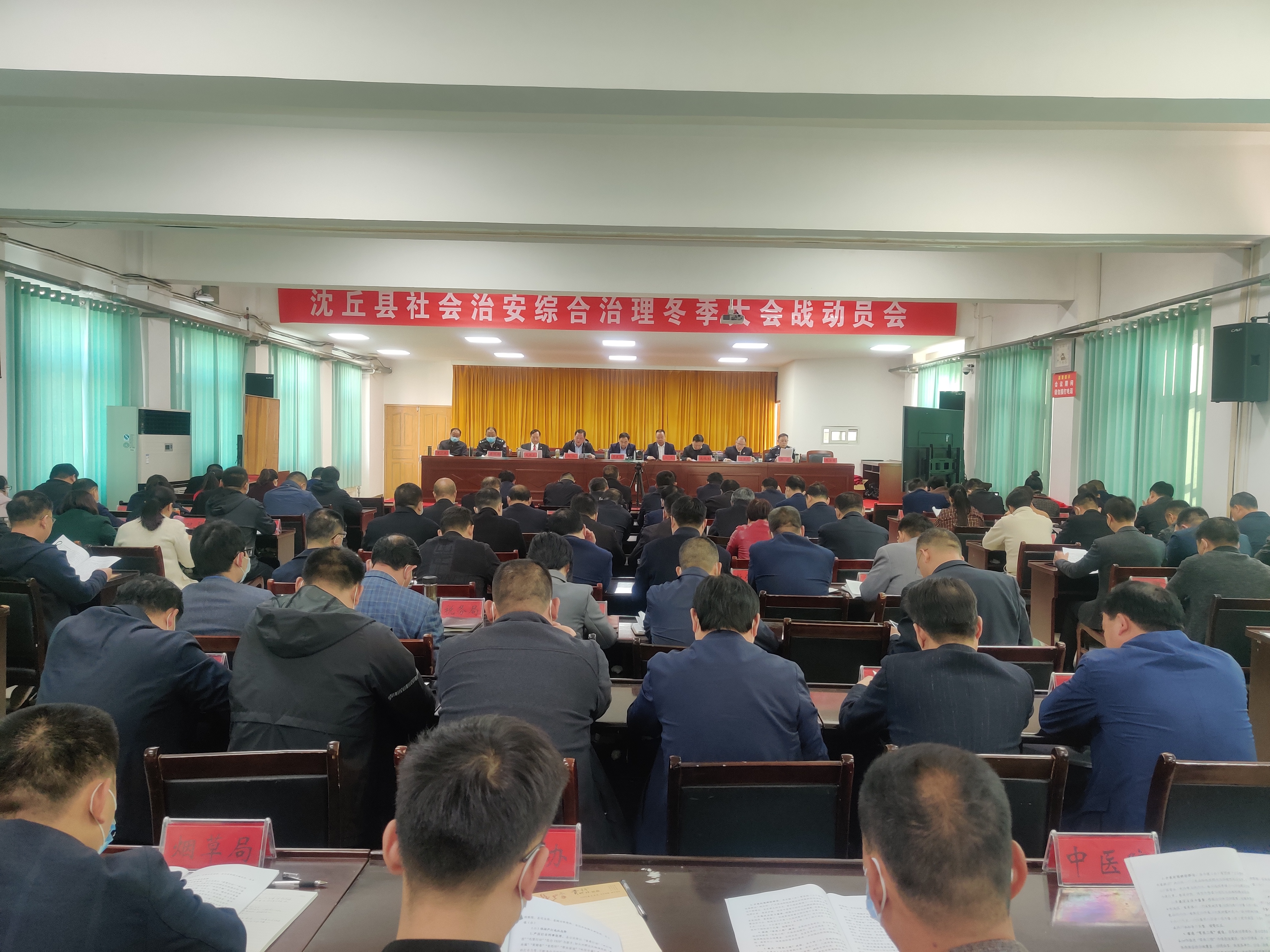 11月4日,沈丘縣組織召開社會(huì)治安綜合治理冬季大會(huì)戰(zhàn)動(dòng)員會(huì)??h領(lǐng)導(dǎo)賈慶偉、段然、張銳、鹿槐生、趙振勇、李世龍、李恒新、張彥、李廣其出席會(huì)議??h直各單位及各鄉(xiāng)鎮(zhèn)(辦)主要負(fù)責(zé)人參加會(huì)議。會(huì)上,副縣長(zhǎng)張銳宣讀了《沈丘社會(huì)治安綜合治理大會(huì)戰(zhàn)工作方案》。