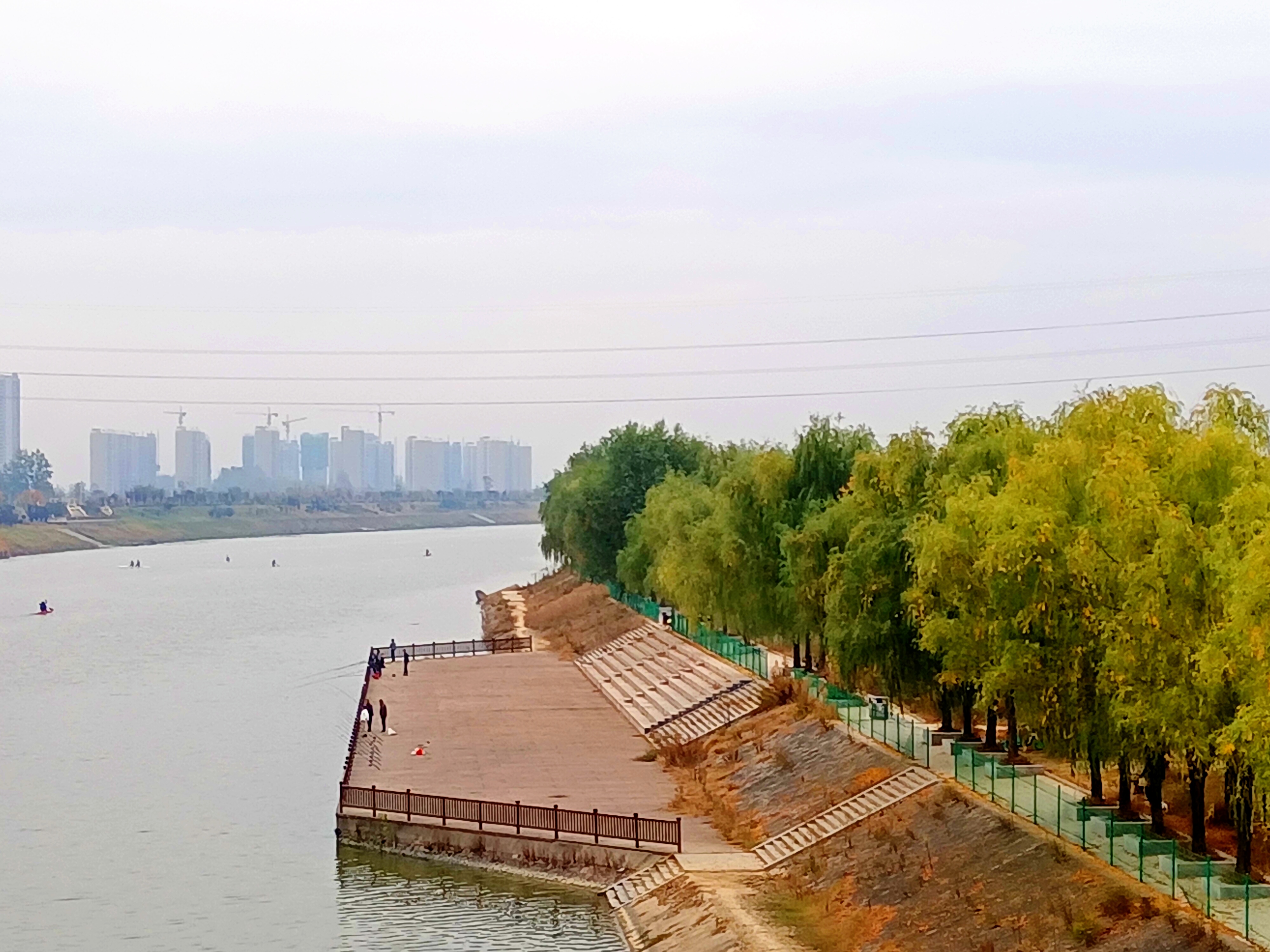 深秋時節(jié)天漸涼,滿目綠色稍染黃。沙潁河畔秋光美,游人垂釣劃舟忙。