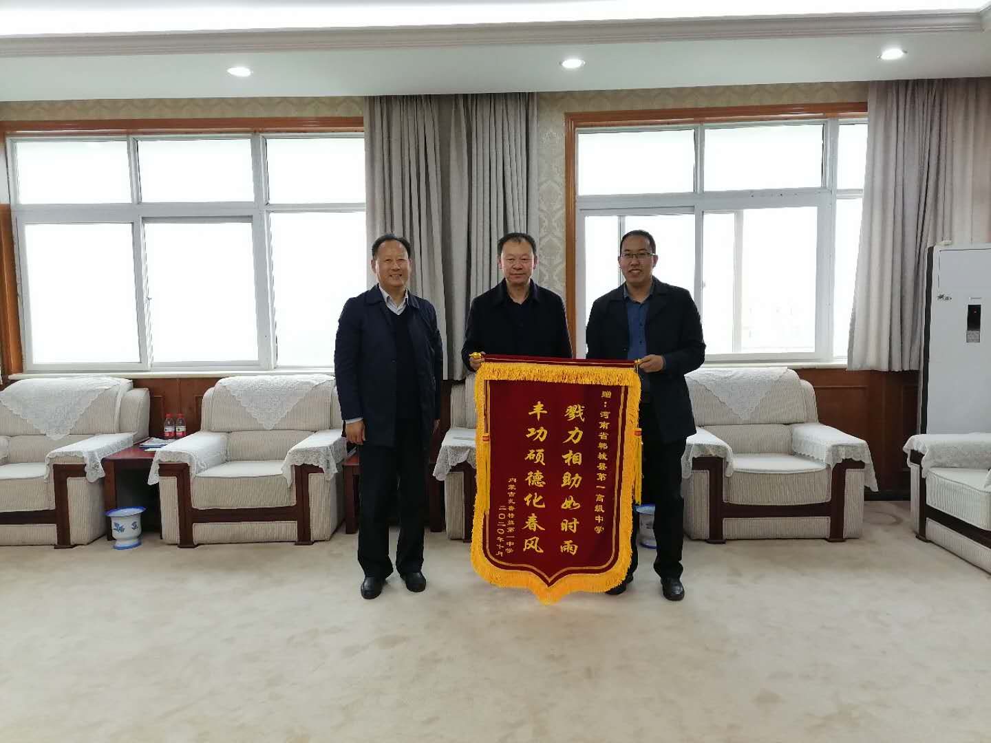 近日,內(nèi)蒙古自治區(qū)通遼市扎魯特旗第一中學(xué)校長(zhǎng)劉思超為感謝鄲城一高,特意從1700多公里外趕來,贈(zèng)送一面“豐功碩德化春風(fēng) 戮力相助如時(shí)雨”錦旗。鄲城縣政府督學(xué)王平崇參加贈(zèng)送儀式。