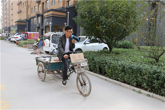 行駛30多分鐘后,劉啟昌來到太康縣城鑫港灣小區(qū),打開喇叭開關(guān),吆喝了起來:“誰家賣書,誰家有多余的書籍賣……”聽到吆喝聲,居民崔海英從家里抱出來一摞書。“全是作文書,學(xué)生看了對(duì)寫作有好處?!贝藓S褧f給劉啟昌說。