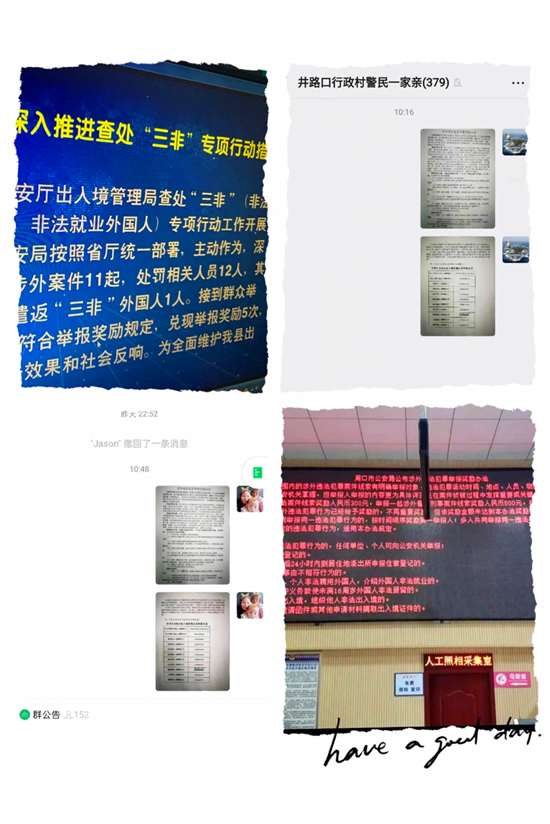 組織集中宣傳。為全面提升宣傳效果,鄲城縣公安局出入境管理科民警面對面向400余名群眾講解市公安局涉外違法犯罪舉報獎勵辦法、國家移民管理局12項移民出入境便利政策措施和疫情防控常態(tài)化非常態(tài)管理等。同時,利用社區(qū)警民微信群、平安建設(shè)微信群、警務微信群、一村一警工作微信群等不間斷宣傳,并要求每日轉(zhuǎn)發(fā)內(nèi)容截圖上報,進一步提高了人民群眾的知曉率和參與度。