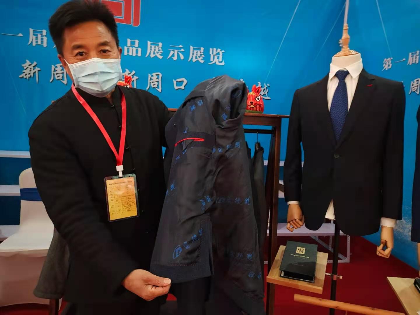 量身定制,做工考究,一件件手工制作的西服讓不少人重新認識服裝的制作過程。在周商大會開幕當天,記者見到了淮陽縣第十三屆政協(xié)常委、非物質文化遺產淮陽布老虎傳承人、淮陽縣工藝美術協(xié)會副主席雷智超。本次大會,他不僅帶來了呆萌的布老虎,還帶來了以自己名字命名的手工西服。制作精良的手工西服像極了一件件藝術品,吸引了不少人咨詢。