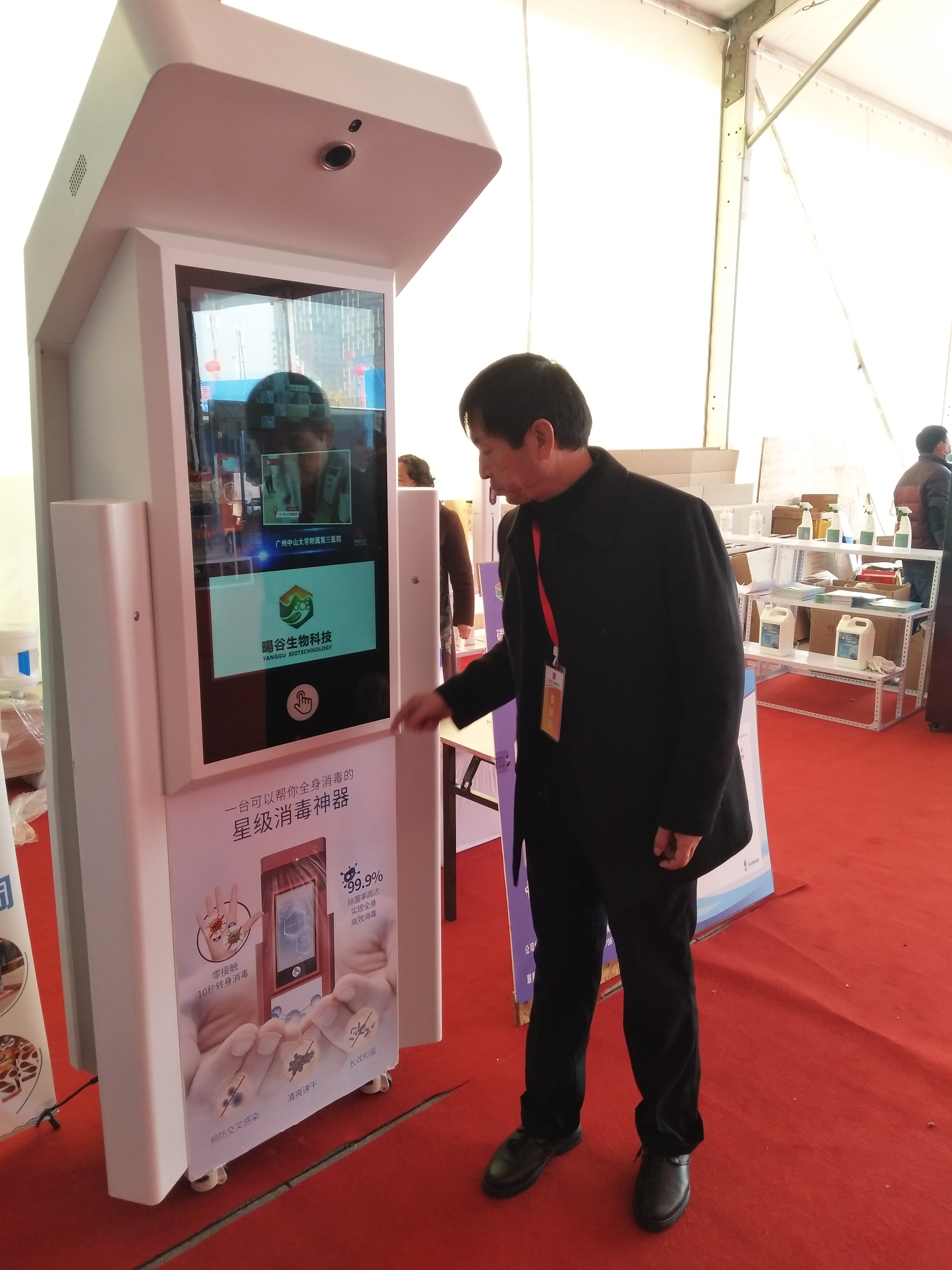 手掌往感控區(qū)上輕輕一罩,液晶屏四角就噴出霧化消毒液,大概持續(xù)10秒,足夠人轉(zhuǎn)一圈做周身消毒——在周商產(chǎn)品展示展覽大廳的西南角,北京陽谷生物科技有限公司市場部總監(jiān) 、項城人張清峰在介紹“人體感應(yīng)消毒機”,引得市民紛紛圍觀體驗。由于消毒液沒有異味,部分市民質(zhì)疑是清水,對此張清峰說:“我們用的是‘竹芳牌’碳酸型微酸性次氯酸消毒液,我們的消毒機主要是面向校園推廣的,給孩子用的東西除了要有效,還得保證安全溫和,碳酸型的消毒液就沒有這么大的刺激性。”據(jù)張清峰介紹,“人體感應(yīng)消毒機”是今年五月下旬生產(chǎn)的新品,目前處在推廣階段,“當(dāng)?shù)弥芸谝k第一屆周商大會的消息,我第一時間想到要把消毒機展示給家鄉(xiāng)父老。我是個在北京打拼十多年的項城人,目前河南分公司由我負(fù)責(zé),項城市政府給了我很多支持?!?/p>