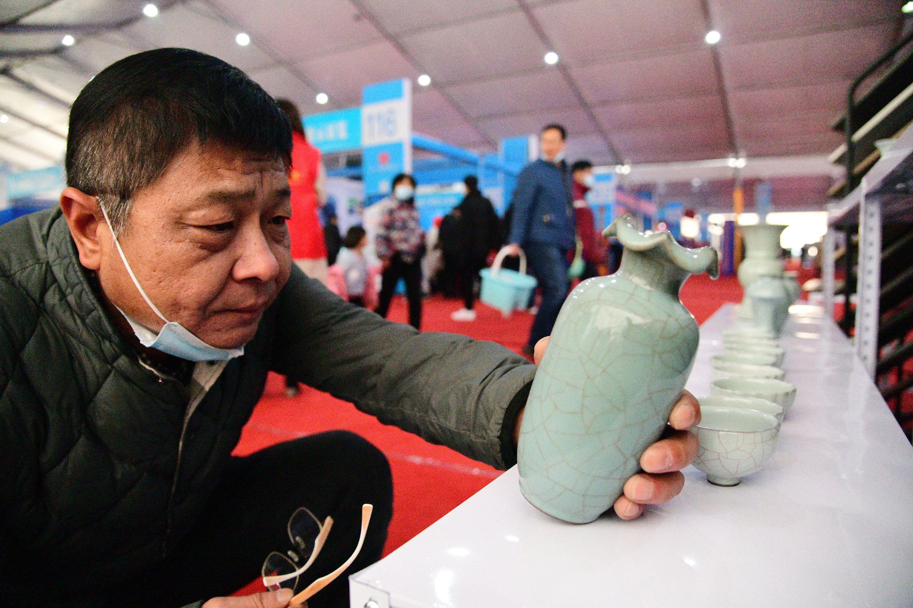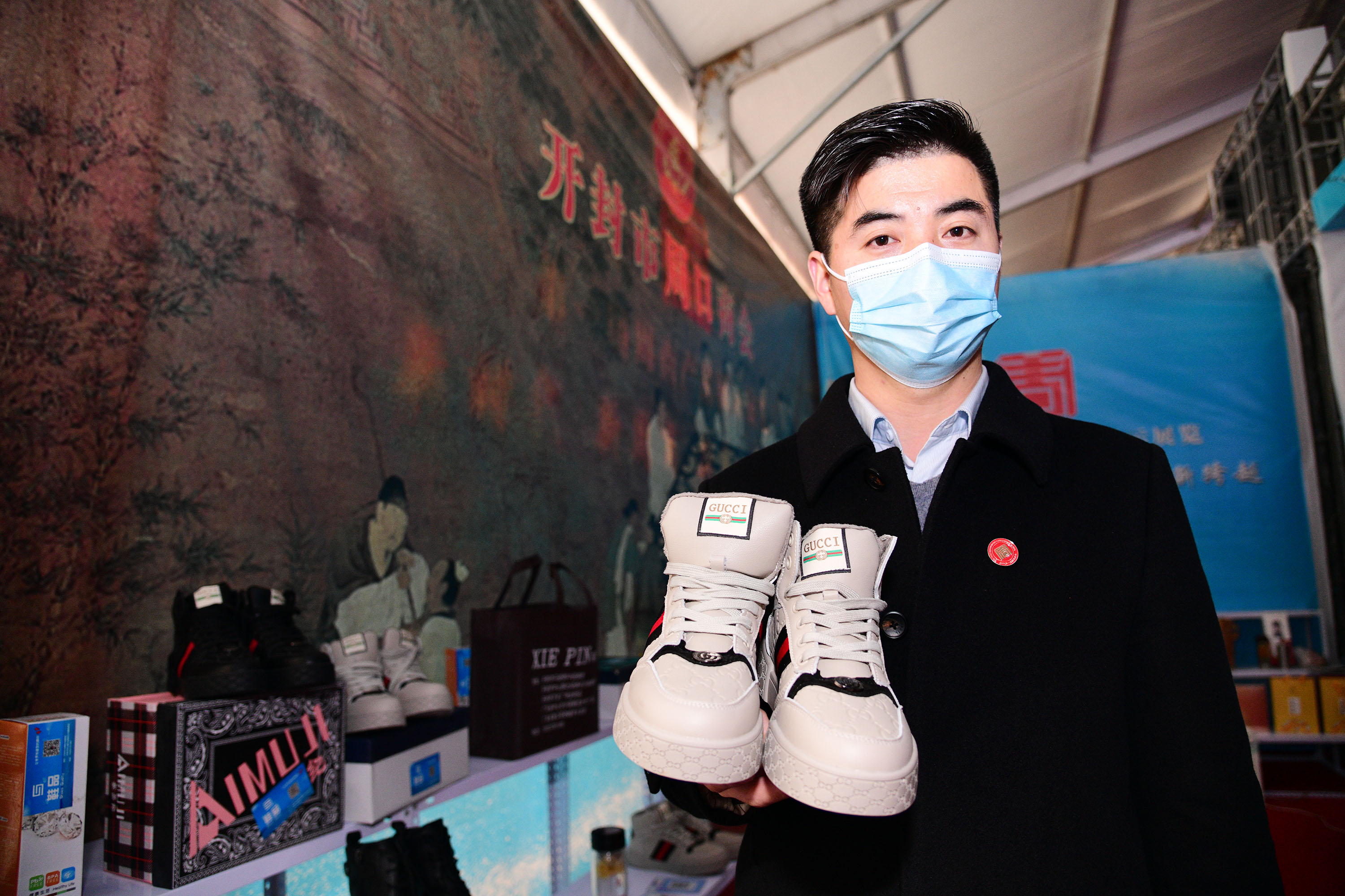 在展會(huì)上給顧客講述大宋官瓷品相的董俊,也是很厲害的周口企業(yè)家,能夠把開封老字號的官瓷,運(yùn)營得風(fēng)生水起,大宋官瓷瓷器和汴繡被譽(yù)為七朝古都象征性的物產(chǎn),還有大宋官茶,含有被譽(yù)為茶中黃金的“金花菌”,是“河南老字號”、“非物質(zhì)文化遺產(chǎn)”,也被選入“首屆開封禮物”。大宋官茶源于宋神宗(公元1068年),它今天的主人是淮陽區(qū)新站籍企業(yè)家牛華麗,這位淮陽籍漢子從小在開封長大,對大宋官茶獨(dú)有情種,現(xiàn)在是大宋官茶掌舵人,是大宋官茶非遺傳承人。而福興齋桶子雞老總馬勇是沈丘人,這是開封的名吃,去開封旅游,吃桶子雞和小籠包,成為游客必須品嘗的美味。馬勇參加周商大會(huì)帶回周口的桶子雞深受家鄉(xiāng)人的喜歡,一直熱賣。而“鞋品”鞋的老總侯建峰是鄲城人,他在廣州設(shè)有代加工廠,鞋子以河南為主要市場,在開封城由五個(gè)專賣店,同時(shí)也銷往全國。