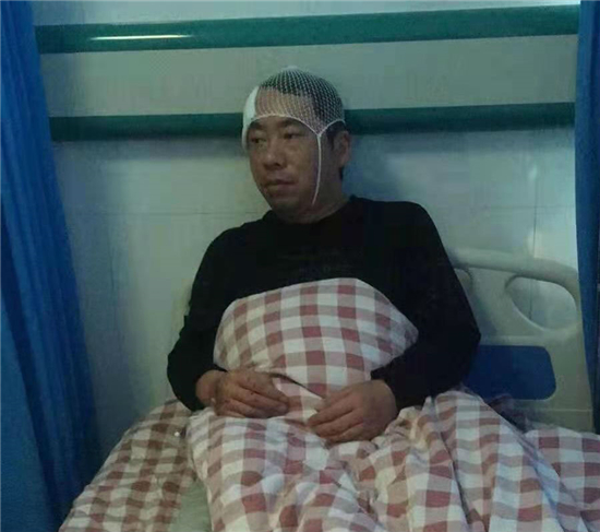 11月11日上午,在鎮(zhèn)領(lǐng)導(dǎo)的安排下,王少華前往縣醫(yī)保局為部分貧困人員及大病人員辦理慢性病本、領(lǐng)取健康扶貧相關(guān)材料。當(dāng)日,他領(lǐng)到材料已是上午10:30分,為了讓老百姓及時(shí)拿到慢性病本與扶貧材料,他馬不停蹄驅(qū)車趕回醫(yī)院。10:45分左右,他行駛到217省道與八一大道交叉口時(shí),一輛由南向北的半掛貨車直挺挺地撞到他的車身上。他頓時(shí)滿頭是血,當(dāng)場(chǎng)失去意識(shí)。120醫(yī)護(hù)人員趕到后,立即把他送到商水縣人民醫(yī)院急診室,完善頭顱、胸部、全腹CT等資料。之后,他接受清創(chuàng)縫合、輸液等相關(guān)處理。13:10分左右,王少華睜開(kāi)眼睛,說(shuō)的第一句話就是:“我要回醫(yī)院,慢性病本還在車?yán)?,我要給他們送去……”住院5天后,大腦嚴(yán)重受損的王少華還不記得車禍的經(jīng)過(guò),一周后才能獨(dú)立行走。