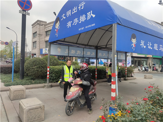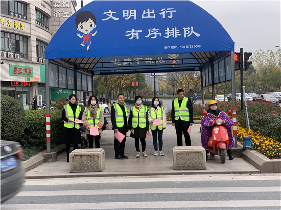 “您好,現(xiàn)在是紅燈,為了安全請等綠燈后再走?!薄罢堅偻笸艘稽c,不要擋住汽車通道……”12月5日是第35個國際志愿者日,當(dāng)日上午8時,正值人流高峰期,在浙江省杭州市富陽區(qū)春江街道大橋路和春南路交叉口,志愿者崔守領(lǐng)一行人身著反光背心在該路口緊張忙碌著,勸導(dǎo)行人文明出行、安全出行,為冬日的杭州增添了一股股暖意。