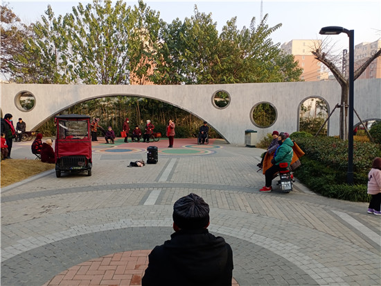 12月10日,雖然氣溫不高,可是天空暖陽(yáng)高照,在周口中心城區(qū)建安路上的一個(gè)街頭游園內(nèi),不僅聚集了前來休閑的老人,還有不少戲迷朋友,她們手拿話筒,唱起戲曲節(jié)目,讓人樂在其中。記者 張洪濤 攝