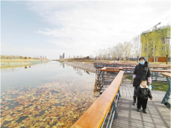 12月14日,市民在松花江路與騰飛路交叉口的休閑游園內(nèi)的木棧道上游玩。市委、市政府對中心城區(qū)洼沖溝、流沙河、幸福河等水系治理己初見成效,中心城區(qū)市民的居住環(huán)境有了巨大改變,實現(xiàn)了河暢、水清、天藍(lán)、景美。