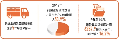 快遞業(yè)務(wù)的總量和增速連續(xù)5年居世界第一,電子商務(wù)和移動(dòng)支付交易額居世界第一……“十三五”以來,我國服務(wù)業(yè)規(guī)模日益壯大,質(zhì)量效益大幅提升,新業(yè)態(tài)新模式快速涌現(xiàn)。