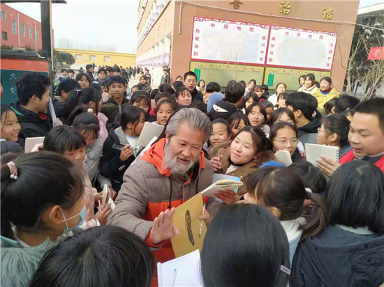 書畫家們的到來,受到學(xué)子們的歡迎,千名學(xué)生將書畫家們團(tuán)團(tuán)圍住,像追星一樣,討教書法藝術(shù)。書畫家門興致盎然,揮毫潑墨,留下 “上善若水”“業(yè)精于勤”、及花鳥圖、山水畫等作品100余幅,并與師生現(xiàn)場互動、傳經(jīng)送道、指點(diǎn)學(xué)生書法作品的得失。