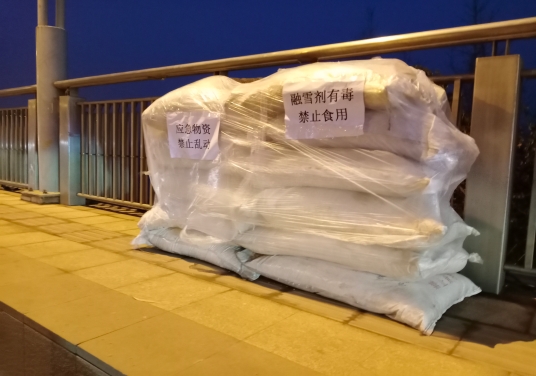12日28日晚,記者在周口大道橋上看到,橋的兩側(cè)放置了五六堆融雪劑,以應(yīng)對(duì)即將到來(lái)的雨雪天氣,防止橋面結(jié)冰給車輛和行人造成不便,此舉受到路過(guò)行人一致好評(píng)。