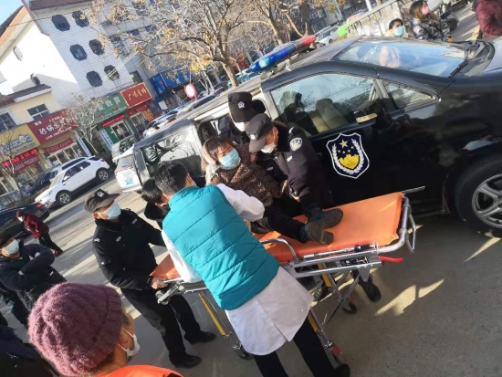1月18日上午,商水縣公安局特巡警大隊(duì)輔警王林林、康留強(qiáng)、馮冰洋、許巍巍巡邏至縣城健康路西段時(shí),發(fā)現(xiàn)路邊圍了很多群眾,出于職業(yè)本能,帶班班長(zhǎng)王林林立即下車查看并詢問(wèn)情況。據(jù)現(xiàn)場(chǎng)群眾介紹,因天氣冷路面結(jié)冰,一老人騎車摔倒,導(dǎo)致右腿骨折??粗先颂稍诒涞牡厣媳砬橥纯?,王林林立即將老人抬上巡邏車先安置好,又急忙撥打120急救電話請(qǐng)求救援。很快,120急救車輛抵達(dá)現(xiàn)場(chǎng),商水縣公安局特巡警大隊(duì)的隊(duì)員們協(xié)助醫(yī)護(hù)人員將傷者抬上救護(hù)車。他們一邊駕駛警車為救護(hù)車開道前往醫(yī)院救治,一邊與老人家屬聯(lián)系,以最快速度將老人送至商水縣中醫(yī)院治療,待老人家屬到達(dá)醫(yī)院,巡邏隊(duì)員已幫老人在醫(yī)院辦理好了住院手續(xù),向老人家屬簡(jiǎn)單交代后,又全身心投入到巡邏中。②9