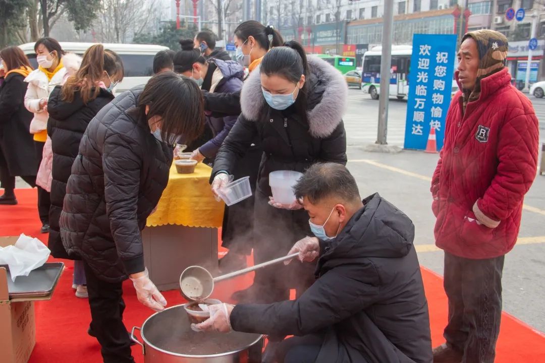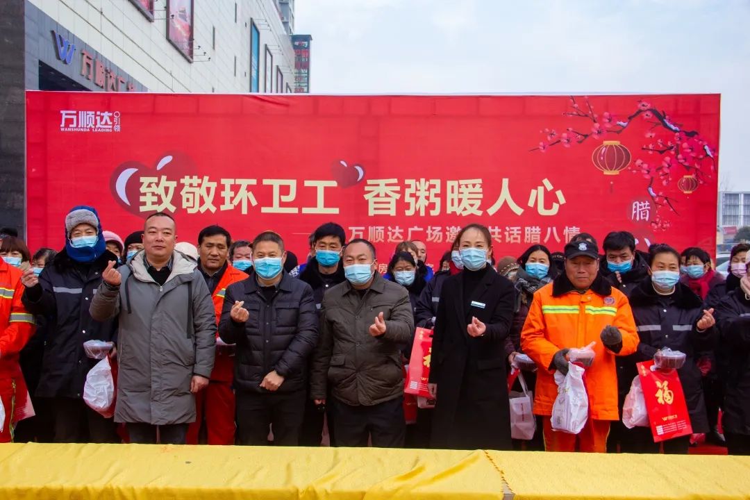 本次活動的主題是“一碗臘八粥,溫暖一座城”。當忙碌一陣后的環(huán)衛(wèi)工人來到萬順達廣場門前時,萬順達廣場的工作人員一曲《好運來》和《你笑起來真好看》,讓整日忙碌的做著重復而又枯燥工作的環(huán)衛(wèi)工人們臉上笑開了花。