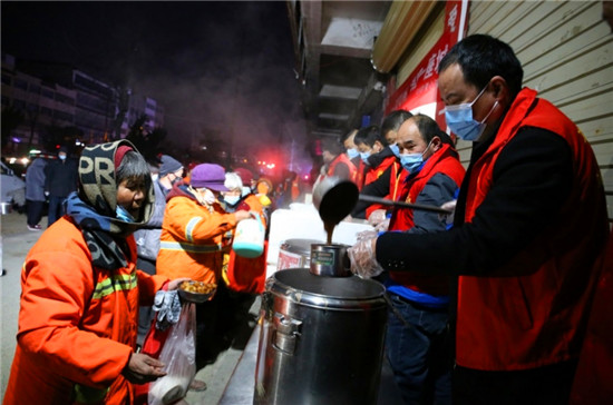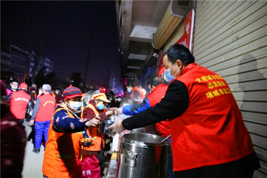 為了使廣大辛勤工作的勞動者度過一個難忘的臘八節(jié),1月20日,項城市總工會黨組書記、常務(wù)副主席田雨帶領(lǐng)市總工會職工志愿服務(wù)隊在環(huán)城路愛心粥屋開展“一碗愛心粥·溫暖一座城”志愿服務(wù)活動,幫環(huán)衛(wèi)工人端飯、盛菜、洗碗,并給愛心粥屋送去了大米、面粉、食用油等物品,為他們送上節(jié)日的問候。