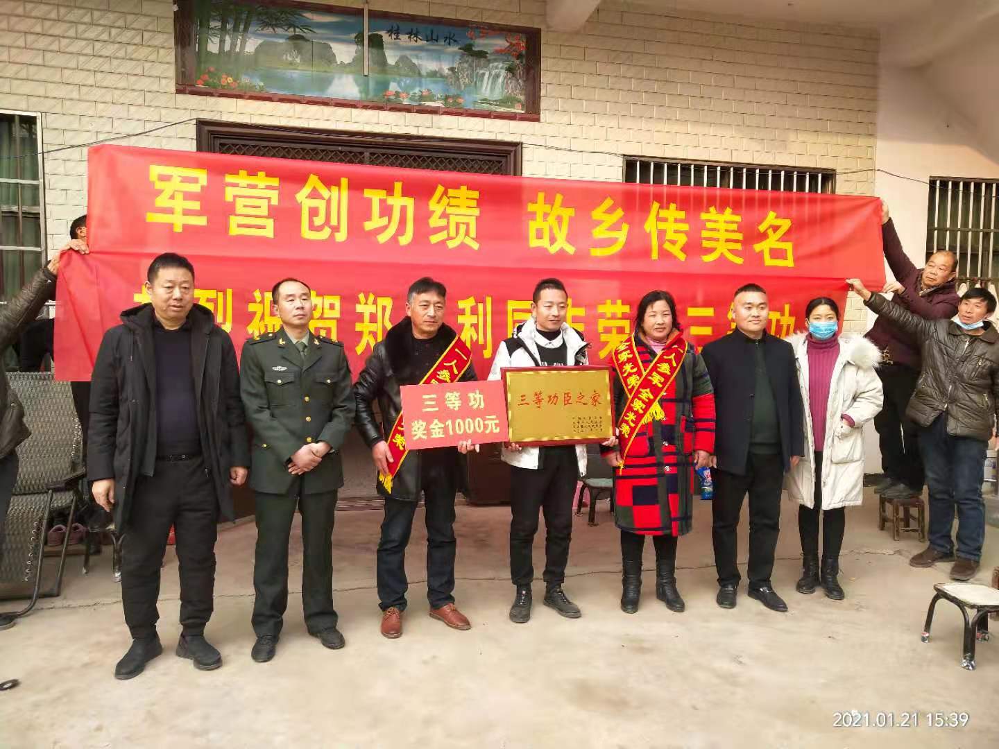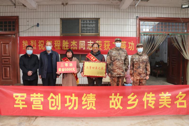 1月21日下午,太康縣高賢鄉(xiāng)保渡村現(xiàn)役軍人程勝杰家門(mén)前鑼鼓喧天,喜氣洋洋,熱鬧非凡。太康縣委常委、縣人武部部長(zhǎng)于永前,政委郭立君,縣退役軍人事務(wù)局局長(zhǎng)潘布道,高賢鄉(xiāng)黨委書(shū)記鄭宏等相關(guān)領(lǐng)導(dǎo)一行,為榮立二等功的程勝杰家屬送來(lái)了立功喜報(bào)、“二等功臣之家”牌匾及5000元慰問(wèn)金。