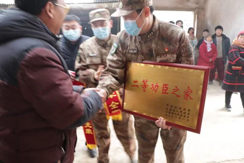 一人立功,全家光榮。為進(jìn)一步做好現(xiàn)役軍人立功獎(jiǎng)勵(lì)及喜報(bào)送達(dá)工作,激發(fā)廣大部隊(duì)官兵安心服役、建功軍營(yíng)的熱情,讓軍人成為全社會(huì)尊崇的職業(yè)。連日來(lái),根據(jù)疫情防控要求,太康縣采取集中時(shí)間、分散慰問(wèn)的形式,由縣人武部和縣退役軍人事務(wù)局組成6個(gè)慰問(wèn)組,以敲鑼打鼓登門(mén)送喜報(bào)的方式,為全縣84名二等功臣和三等功臣的現(xiàn)役軍人家庭送喜報(bào),營(yíng)造“參軍報(bào)國(guó)、立功榮耀”的濃厚氛圍。 此舉不僅使廣大人民群眾對(duì)軍人多了一份尊崇和認(rèn)可,也使官兵和軍屬切身感受到“一人立功、全家光榮”的自豪感榮譽(yù)感,進(jìn)一步激勵(lì)了更多有志青年投身軍旅,報(bào)效祖國(guó)。