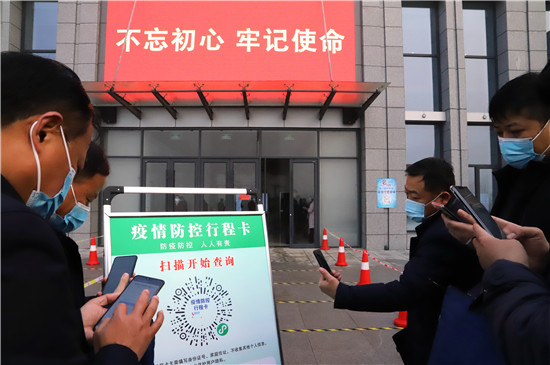 在會(huì)場之外,該縣疫情防控指揮部設(shè)立多重保障守護(hù)大會(huì)安全。在疫情防控常態(tài)化所有人員必須戴口罩的情況下,首先通過第一重保障,即通過手機(jī)掃描“通信大數(shù)據(jù)行程卡”,呈“綠碼”方可走向會(huì)場大門;進(jìn)入會(huì)場大門時(shí),排隊(duì)進(jìn)行體溫監(jiān)測,體溫顯示正常方可進(jìn)入。與此同時(shí),會(huì)場座位按照隔位入座的形式,保障人與人之間的距離超過50厘米。在多重保障的守護(hù)下,確保大會(huì)順利安全舉行。③5