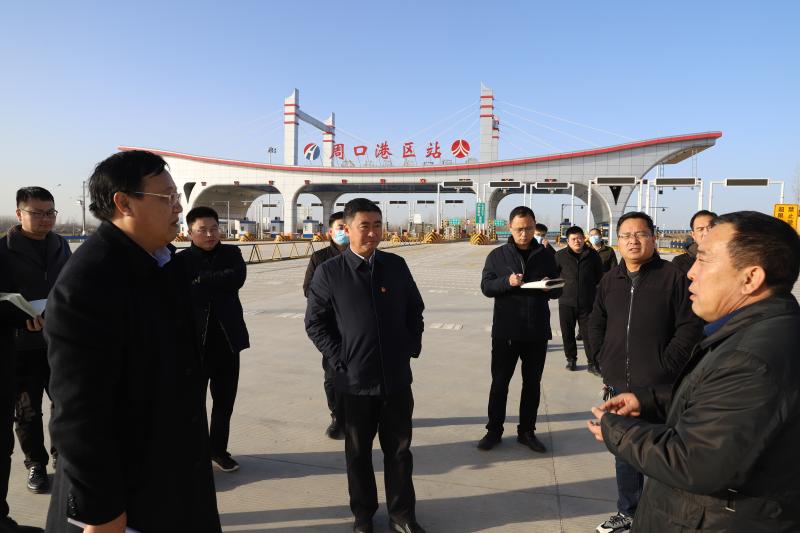 大廣高速港區(qū)互通立交項目距中心港碼頭約為1.2公里,目前已經達到通車條件,通車后通過疏港道路實現碼頭與高速無縫對接。在該項目收費站,孫鵬詳細詢問項目負責人通車前需要做的工作,他指出,高速公路是多式聯(lián)運的重要組成部分,要抓緊時間解決目前存在問題,推進大廣高速港區(qū)互通立交項目早日通車。