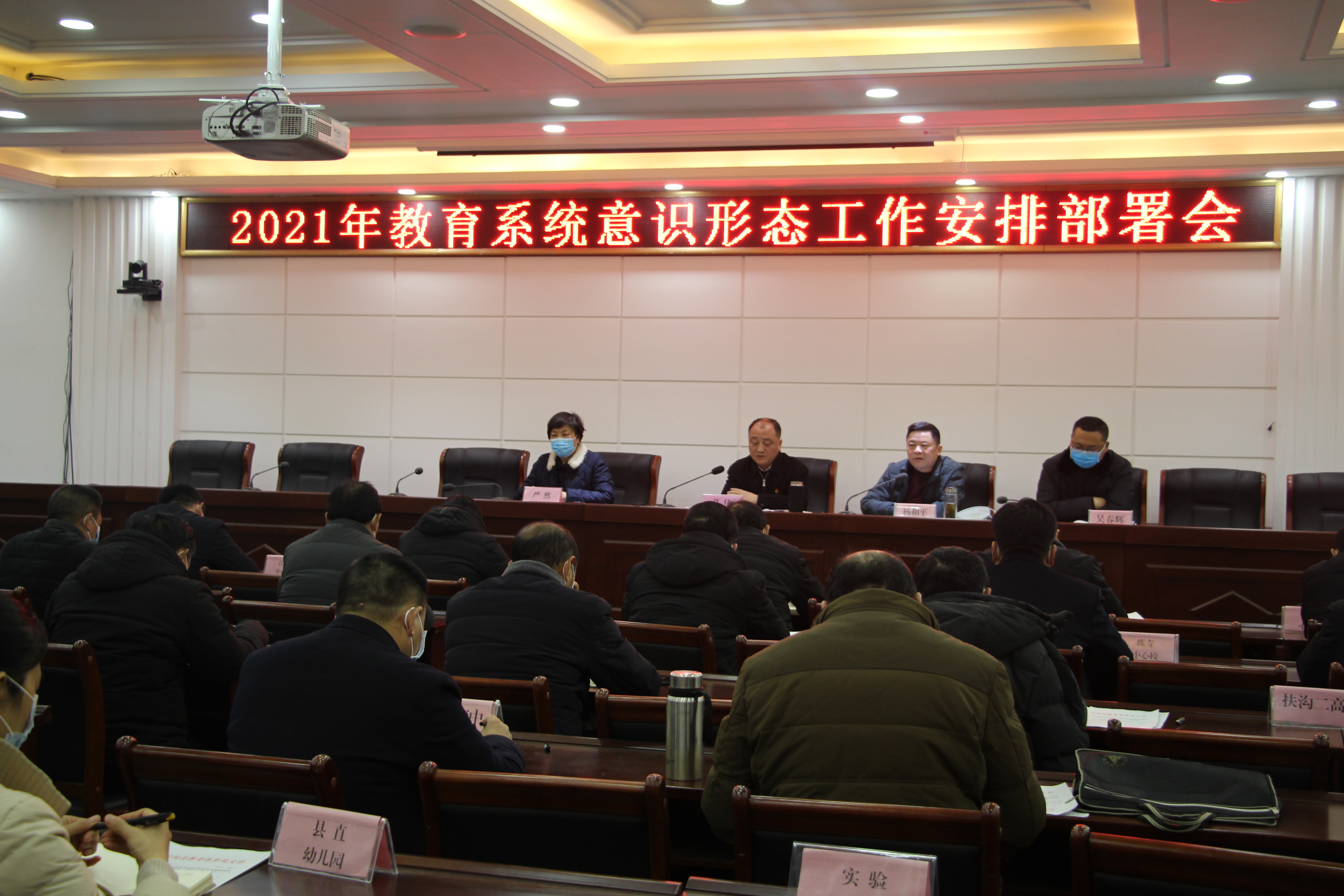 2月2日,扶溝縣召開(kāi)2021年教育系統(tǒng)意識(shí)形態(tài)工作安排部署會(huì)??h教體局班子成員、各股室負(fù)責(zé)人,各鄉(xiāng)鎮(zhèn)(街道)中心校校長(zhǎng),各局直學(xué)校校長(zhǎng)、幼兒園園長(zhǎng)參加會(huì)議。