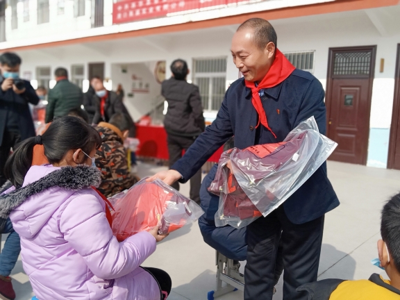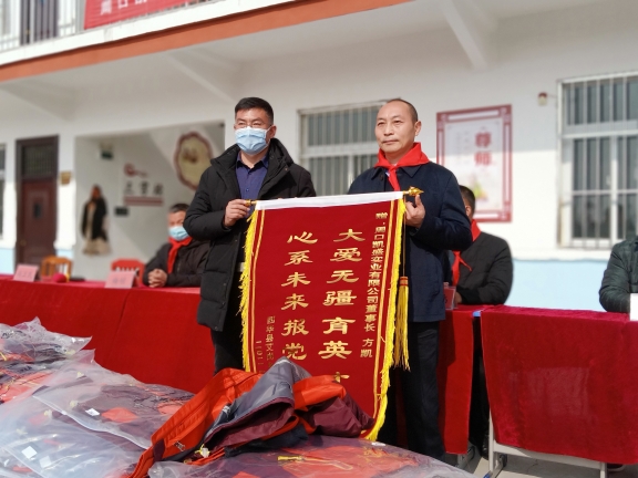 春節(jié)臨近,方凱自掏腰包6萬余元,購買164套新校服捐贈(zèng)給西華縣艾崗鄉(xiāng)半截樓小學(xué),一如既往地將大愛播撒與傳遞。說起方凱的愛心行動(dòng),那是不勝枚舉。方凱10余年來堅(jiān)持幫貧濟(jì)困,每年都采取不同的方式,為貧困戶、貧困大學(xué)生、環(huán)衛(wèi)工、留守兒童、敬老院、貧困學(xué)校、福利中心智障孩子和災(zāi)區(qū)等進(jìn)行愛心捐助,已經(jīng)累計(jì)捐款捐物達(dá)1600多萬元。為了表達(dá)對(duì)方凱的謝意,西華縣艾崗鄉(xiāng)半截樓小學(xué)向方凱贈(zèng)送了“大愛無疆育英才,心系未來報(bào)黨恩”的錦旗,同時(shí),還鄭重聘請(qǐng)方凱為該校名譽(yù)校長。