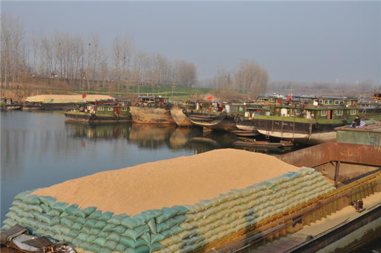 春節(jié)臨近,用電高峰到來,發(fā)電用煤量大增,商水港比平時更忙?!拔覀円惶炀湍馨岩粋€火車專列的煤裝運到船上,駛向下游城市!”在現(xiàn)場指揮的商水港負責人孫玉田指著沙河中停泊的10多個貨運船說。