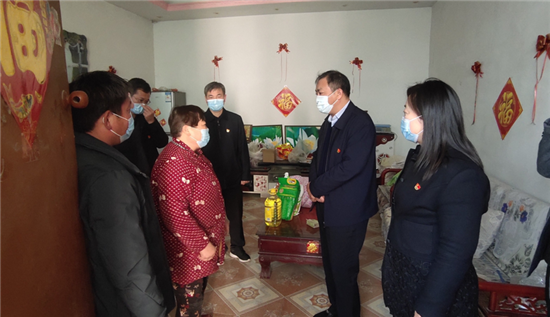 2月5日下午,帶著濃濃的牽掛和祝福,市政府副秘書長(zhǎng)、辦公室主任劉德君一行赴結(jié)對(duì)幫扶的淮陽區(qū)齊老鄉(xiāng)柳南行政村開展“話脫貧、感黨恩、奮進(jìn)新時(shí)代”走訪慰問活動(dòng),為困難群眾和老黨員送去米面油、棉衣棉被等生活用品,并向他們致以新春的祝福。