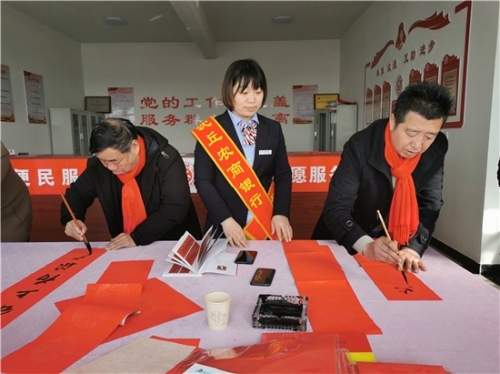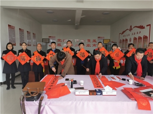牛年春來(lái)早,農(nóng)家喜事多。2月7日,陽(yáng)光明媚,春光普照。沈丘縣農(nóng)商銀行組織省市書(shū)協(xié)著名書(shū)法家來(lái)到沈丘縣白集鎮(zhèn)田營(yíng)村, 為村民義寫(xiě)春聯(lián)。