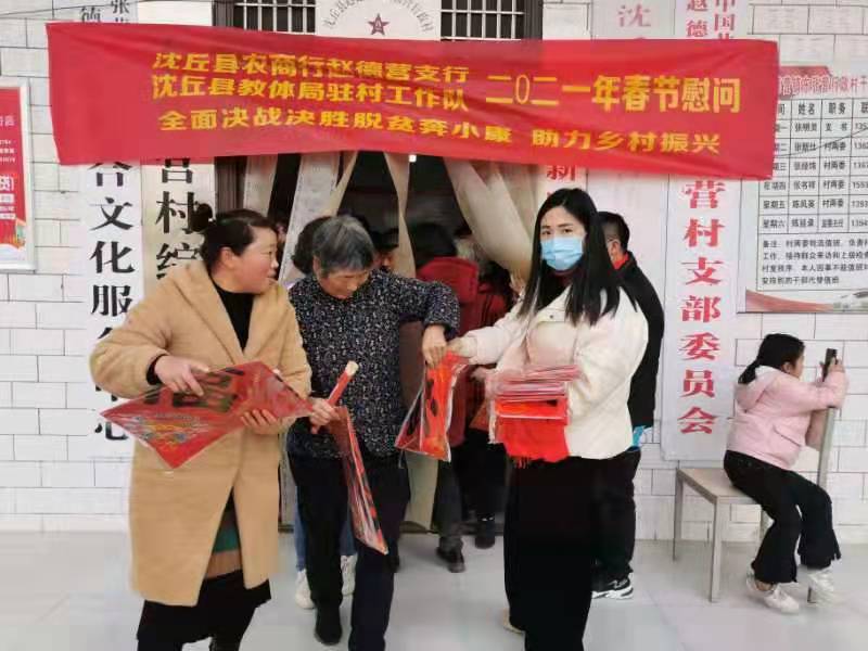 村室外邊,縣教體局駐村工作隊(duì)長(zhǎng)李小兵、村干部不停地把一幅幅火紅的春聯(lián)遞到村民的手上,并和大家互道祝福:“鄉(xiāng)親們,新年好,牛年好運(yùn)?!?/p>
