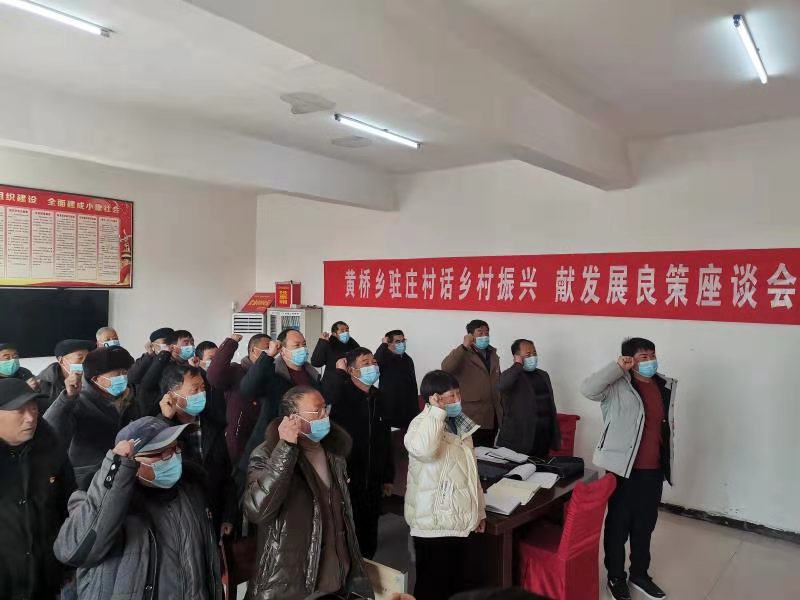 “我志愿加入中國共產黨……”駐莊村黨支部書記劉廣濤帶領與會黨員開展重溫入黨誓詞活動,面對黨旗,舉起右手,黨徽在胸前熠熠閃耀。隨后,以“微黨課”的形式,劉廣濤通報了家鄉(xiāng)變化,駐村第一書記張振芳領學了《習近平調研指導過的貧困村脫貧紀實》,與返鄉(xiāng)黨員們共話振興路,暢談發(fā)展良策。