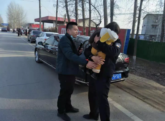 見到報警人時,民警發(fā)現(xiàn)小女孩還在不停的哭泣,已為人父的顧一諾趕緊將小女孩抱入懷中,輕輕擦拭女孩臉上的淚水,不停的安慰。簡單的向報警人了解情況后,顧一諾抱著小女孩開始在附近商鋪為其尋找家人,或許是因為顧一諾特別會哄小孩,在找尋途中,小女孩竟然趴在顧一諾的肩膀上睡著了,擔(dān)心孩子著涼,顧一諾和同事決定先將小女孩抱回派出所。