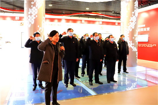 2月18日,新年上班第一天,市人大常委會(huì)副主任、鄲城縣委書(shū)記羅文閣,縣委副書(shū)記、縣長(zhǎng)李全林帶領(lǐng)縣四個(gè)班子領(lǐng)導(dǎo)和部分縣直單位黨員干部,開(kāi)展中共黨史學(xué)習(xí)教育活動(dòng),激勵(lì)全縣各級(jí)黨員干部不忘初心、牢記使命,在新時(shí)代不斷加強(qiáng)黨的建設(shè),更加緊密地團(tuán)結(jié)在以習(xí)近平同志為核心的黨中央周?chē)冀K保持永不懈怠的精神狀態(tài)和一往無(wú)前的奮斗姿態(tài),振奮精神,堅(jiān)定信心,銳意進(jìn)取,真抓實(shí)干,奮力譜寫(xiě)全面建設(shè)社會(huì)主義現(xiàn)代化鄲城新篇章,以?xún)?yōu)異成績(jī)迎接建黨100周年。