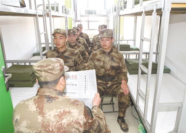 今年上半年的預(yù)定新兵役前訓(xùn)練,正值衛(wèi)國戍邊英雄官兵的先進(jìn)事跡被新聞媒體宣傳。沈丘縣人武部抓住這一向“衛(wèi)國戍邊英雄”學(xué)習(xí)的好時機(jī),組織應(yīng)征青年觀看前線“斗爭”視頻、緬懷英雄事跡、專題宣講教育、討論發(fā)言、簽名、向英雄致敬等,對應(yīng)征青年集中進(jìn)行教育。