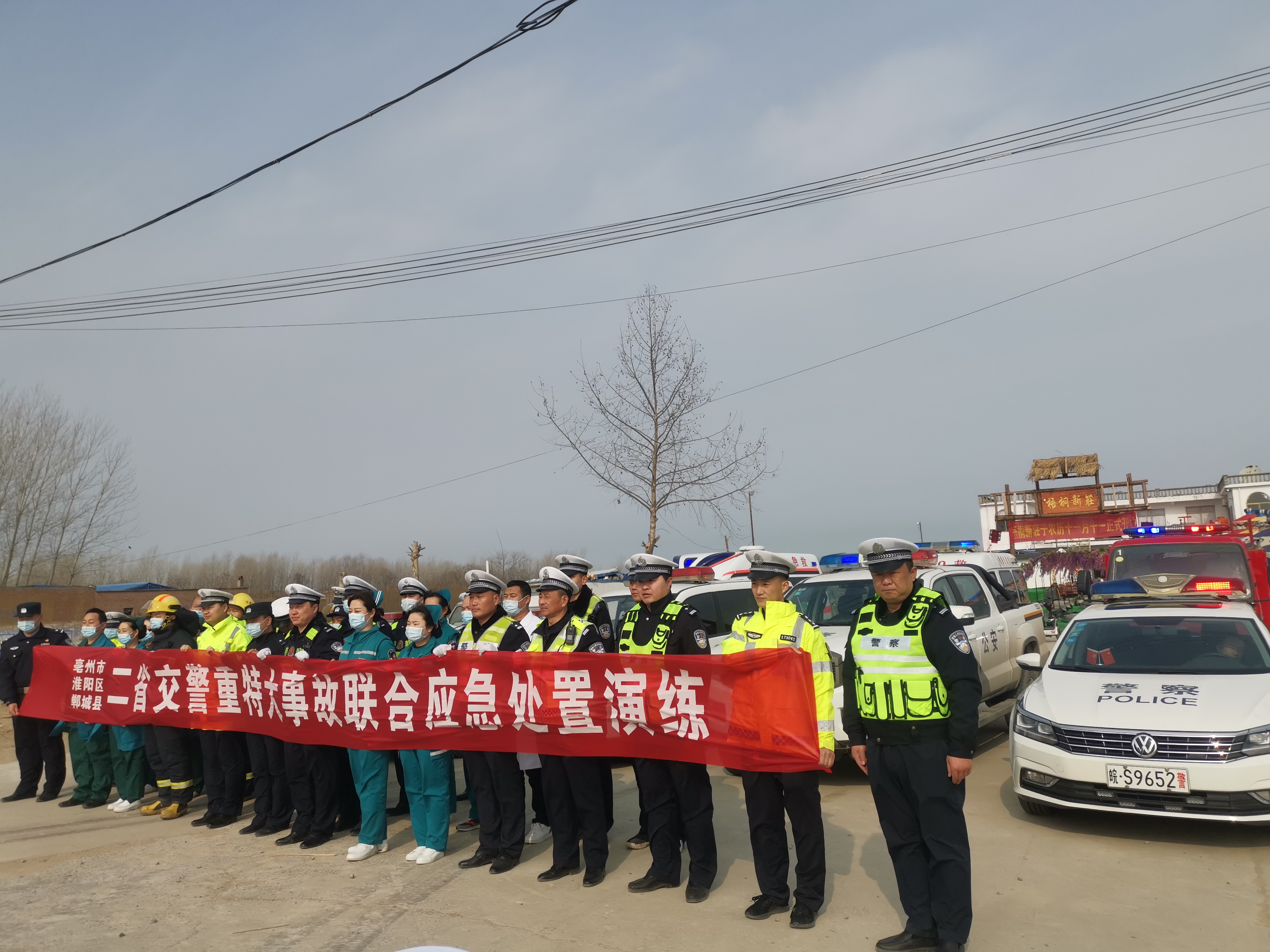 為提高冬季惡劣天氣條件下突發(fā)道路交通事故應(yīng)急處置能力、各部門之間的協(xié)同作戰(zhàn)以及應(yīng)急指揮系統(tǒng)的組織協(xié)調(diào)能力,最大限度減少因交通事故導(dǎo)致的人員傷亡,確保人民群眾生命財(cái)產(chǎn)安全,鄲城縣公安交通警察大隊(duì)聯(lián)合淮陽區(qū)公安交通警察大隊(duì)和安徽省亳州市公安交通警察支隊(duì)四大隊(duì)雙溝中隊(duì),及鄲城縣公安局南豐鎮(zhèn)派出所,應(yīng)急管理、鄲城縣麗清醫(yī)院,鄲城縣中心醫(yī)院,道路基金救助辦公室等部門開展了道路交通事故快速發(fā)現(xiàn)、及時救援、有效救治、妥善救助的“四位一體”聯(lián)動型應(yīng)急處置演練活動。