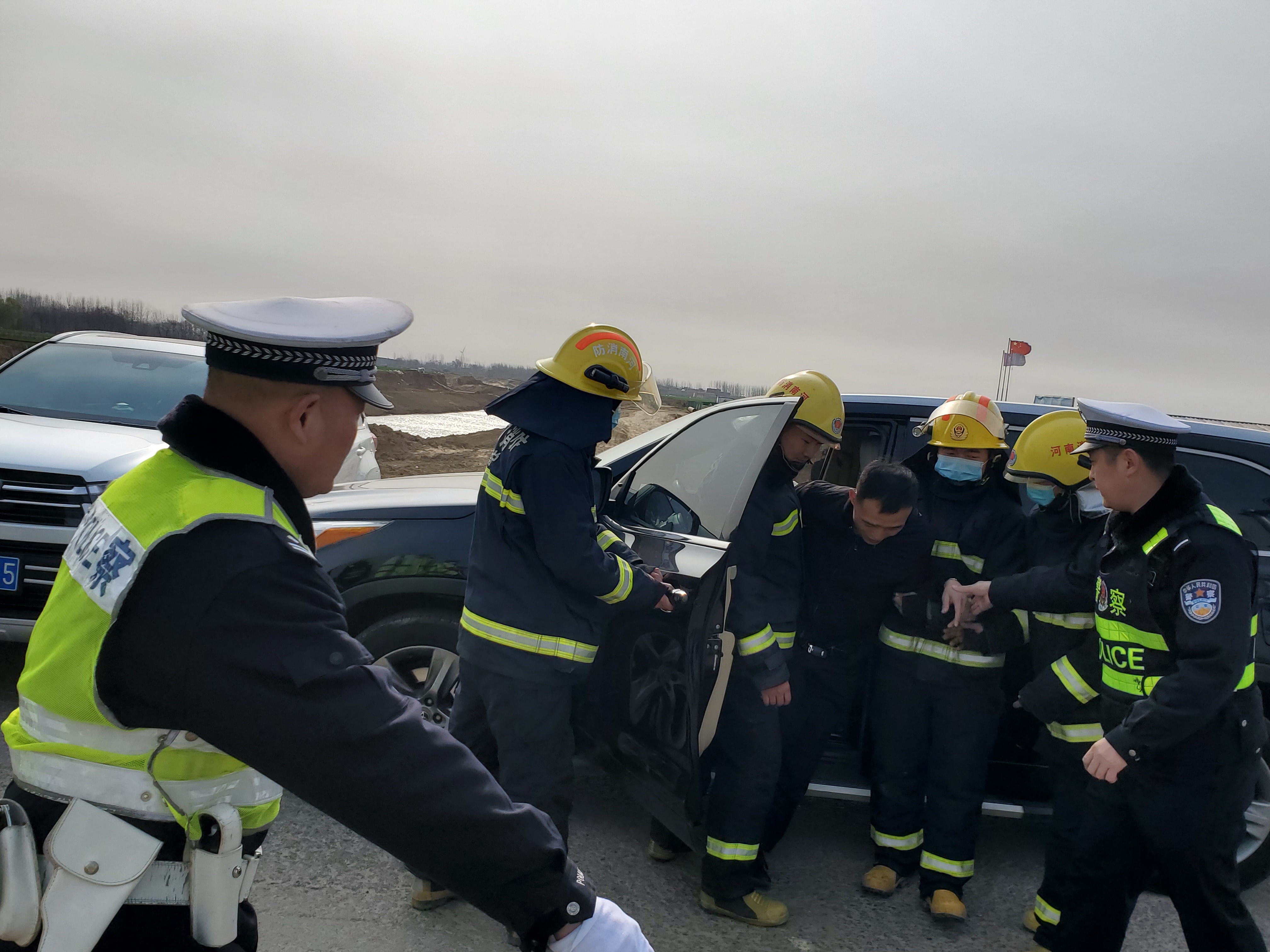 演練模擬2月23日10許,在G220國道河南安徽二省交界友誼橋處,二輛越野車在道路中心線處相撞,二輛車駕駛?cè)祟^部受傷流血,車門被卡,車輛起火冒煙道路嚴(yán)重?fù)矶隆⑶闆r危急。接到報警后,交警部門立即向上級進(jìn)行匯報,“四位一體”聯(lián)動工作機(jī)制隨即啟動,相關(guān)部門迅速趕往現(xiàn)場開展事故處置和救援工作。同時會同交警、屬地派出所,消防救援、醫(yī)療救護(hù)部門一起協(xié)助開展相關(guān)工作。隨后事故民警按照現(xiàn)場勘查要求,迅速對現(xiàn)場進(jìn)行勘查、拍照,提取相關(guān)證據(jù),配合搶險、醫(yī)療施救各部門,并對現(xiàn)場遺留物品進(jìn)行清理、登記并妥善保管。勘查結(jié)束后交警部門解除警戒區(qū),將車輛疏導(dǎo)、分流完畢后撤離現(xiàn)場。