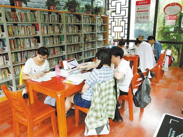 市民在街頭的智慧圖書(shū)館看書(shū)。 (資料圖片)