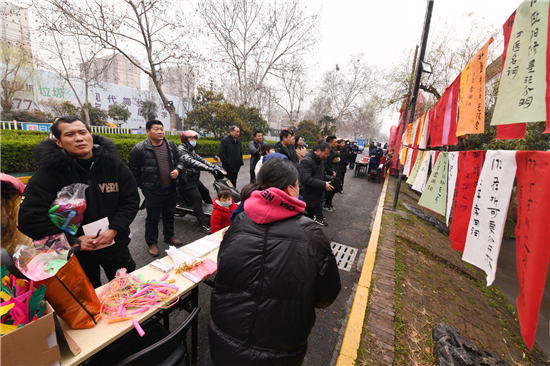 他說,讓他難忘的是十多年前,在七一路市委門前的元宵節(jié)燈謎會(huì)上,人山人海,大家搶著猜謎。當(dāng)很多人圍著搶猜時(shí),他不搭話,搶先拽下謎條,一張兩張……,攥在手里,在一片驚訝、贊賞的目光中去兌謎底,作為一個(gè)農(nóng)民,和滿腹才學(xué)的知識(shí)分子一較高下,那是最開心的時(shí)刻。他外出打工,也是哪里有燈謎,他就設(shè)法趕去。他說,浙江一帶猜謎活動(dòng)非常多,大人小孩都喜歡。謎語文化是傳統(tǒng)的東西,不能丟。他此次趕來周口猜燈謎是從周口日?qǐng)?bào)、周口晚報(bào)的微信和周道發(fā)布的消息上知道,一大早搭公交車趕到市區(qū),由于不知道華威民俗文化博物苑在哪?便一路打開手機(jī)導(dǎo)航趕到現(xiàn)場(chǎng)。