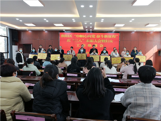 大會表彰了68名淮陽區(qū)“三八”紅旗手、50名淮陽區(qū)巾幗建功標(biāo)兵、10名淮陽區(qū)先進(jìn)婦女工作者、19名淮陽區(qū)農(nóng)村致富女能手、32名淮陽區(qū)抗疫巾幗先進(jìn)個人榮譽(yù)稱號、10個淮陽區(qū)“三八”紅旗集體、10個淮陽區(qū)巾幗文明崗、10個淮陽區(qū)先進(jìn)基層婦女組織。