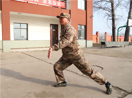 同時(shí),王成華也很幽默,深受準(zhǔn)新兵的喜愛(ài),“在這個(gè)隊(duì)伍里,說(shuō)不定你的爸爸當(dāng)年當(dāng)兵時(shí)就是我訓(xùn)練的。起初,大家叫我‘王班長(zhǎng)’,后來(lái)叫我‘老班長(zhǎng)’,現(xiàn)在叫我‘班長(zhǎng)王’,是不是覺(jué)得我太老了?來(lái),我給大家打一套軍體拳!不服的上來(lái)試試。”